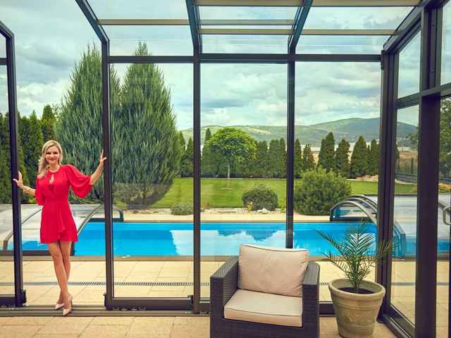 VARIETATEFolositi terasa sau piscina in orice conditii de vreme, deschideti acoperirea in zilele calduroase, inchideti acoperirea si protejati-va de frig sau ploaie. |