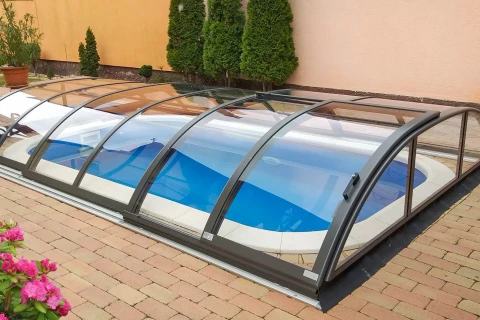 Acoperirea de piscina este formata din 3 segmente care se deplaseaza bidirectional
