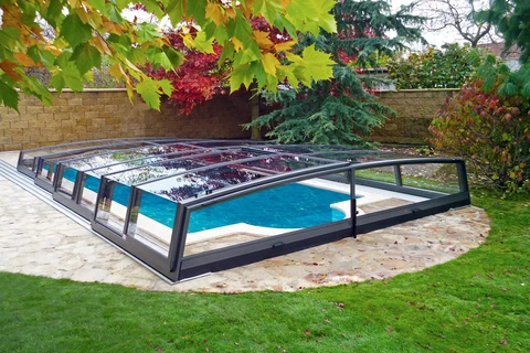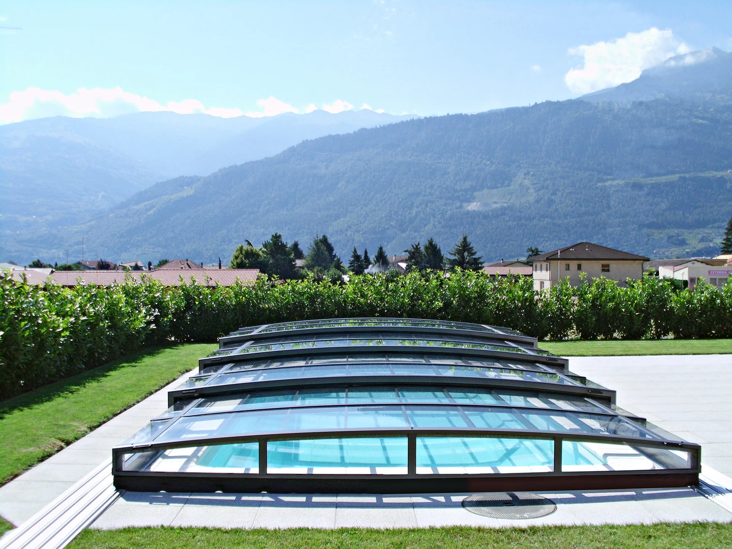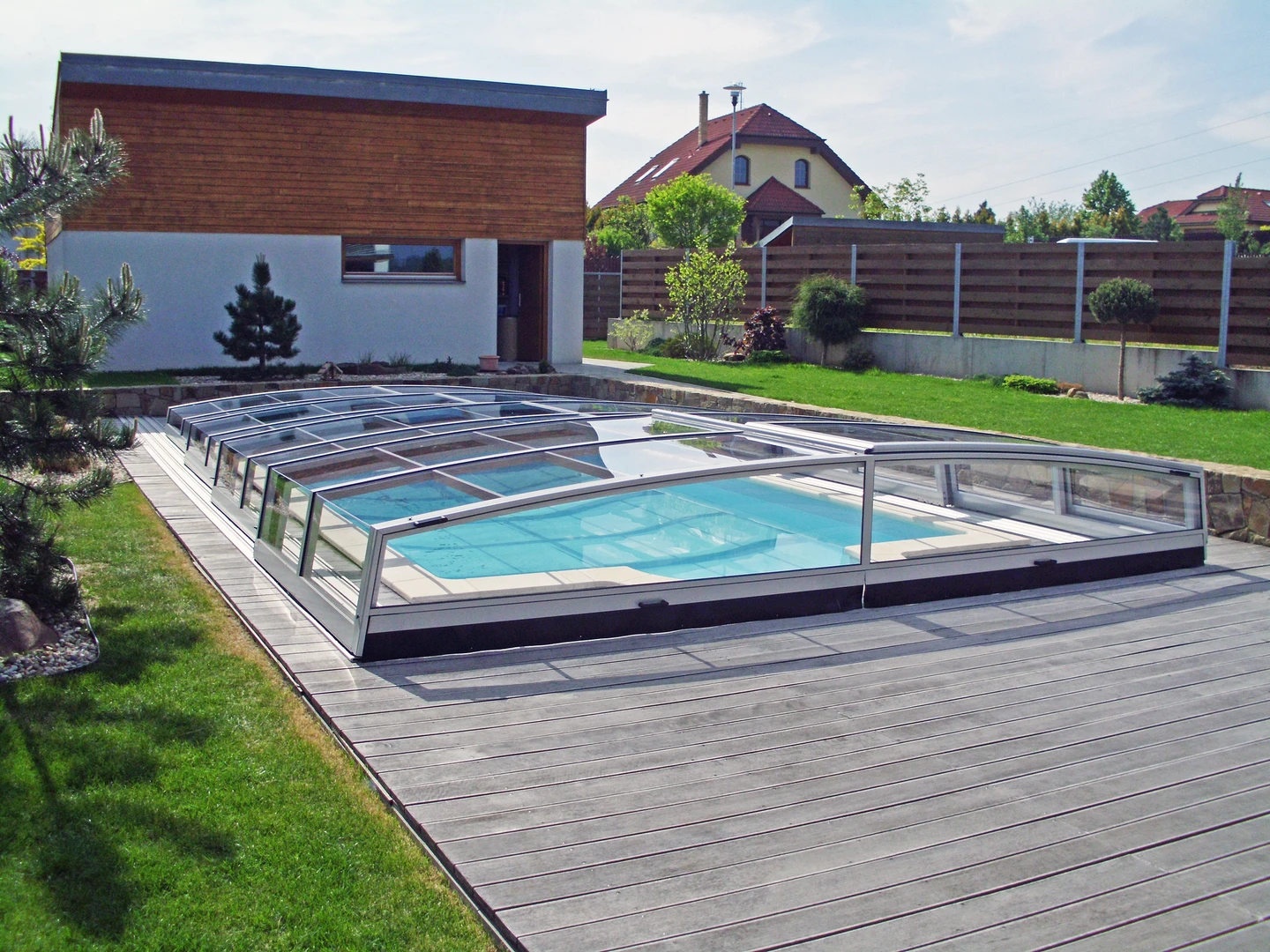 Acoperirea pentru piscina CORONA™ este cea mai joasa solutie cu doua sine de la Alukov, care protejeaza piscina de impuritati si ajuta la mentinerea temperaturii apei. Designul sau curat combina un acoperis usor curbat cu pereti laterali extrem de scunzi, aproape imperceptibili.