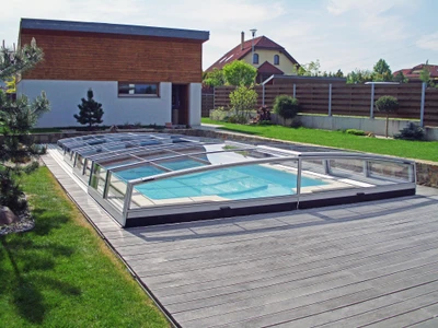 Case familiale: Acoperirea de piscina CORONA™ este alegerea ideala pentru familiile cu copii. Aceasta sporeste siguranta, prelungind semnificativ sezonul de inot – de la primavara devrene pana toamna tarziu.