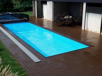 Acoperirea pentru piscina PARADE™ este alegerea ideala pentru proprietarii care doresc o protectie eficienta si estetica a piscinei. Structura sa telescopica permite deschiderea si inchiderea usoara, facand accesul si intretinerea piscinei mult mai comoda. Panourile transparente din policarbonat asigura o vizibilitate completa a suprafetei apei, in timp ce elementele de siguranta previn accesul neautorizat si protejeaza impotriva conditiilor meteo nefavorabile.