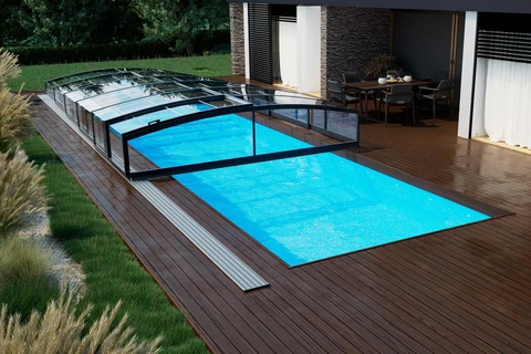 Acoperirea pentru piscina PARADE™ ofera combinatia ideala intre functionalitate si estetica; pentru protejarea piscinelor din gradina dumneavoastra. Datorita designului modern si al solutiilor tehnice, poate fi un accesoriu discret si elegant pentru orice gradina. Structura telescopica este stabila, dar usoara, ceea ce face foarte simpla manevrarea oricarui segment component. Sistemul cu sina pe o singura parte, reprezinta o solutie eleganta si faciliteaza accesul la piscina.
