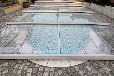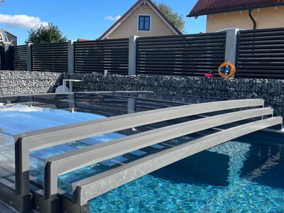 Acoperirea pentru piscina PARADE LOW™ este o solutie glisanta de inaltime extrem de mica si design simplu, care se integreaza discret in peisajul gradinii, aproape neobservata. Datorita formei minimaliste, se remarca ca fiind parte dintre cele mai joase modele disponibile pe piata, pastrand totodata un design practic si functional.