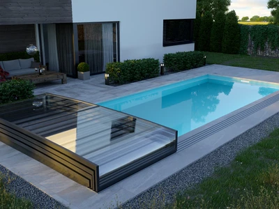 Acoperirea pentru piscina PARADE LOW™ nu doar ca se integreaza estetic in peisajul gradinii, ci contribuie si la reducerea costurilor de intretinere ale piscinei. Utilizarea sa reduce pierderile de caldura, facilitand mentinerea temperaturii apei, in timp ce diminueaza necesitatea curatarii cauzata de impuritatile ce patrund in piscina. Acoperirea este disponibila in nuanta antracit, permitand o armonizare usoara cu elementele arhitecturale si ale gradinii.