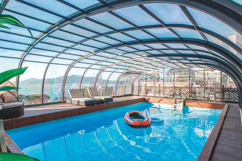 Acoperire pentru suprafete mari, cum ar fi piscinele publice, LAGUNA NEO™ ofera un interior spatios. Nu functioneaza doar ca acoperire eficienta pentru piscina, ci si ca loc confortabil de relaxare pentru familie sau prietenii dupa inot.