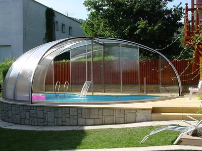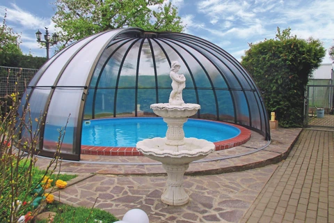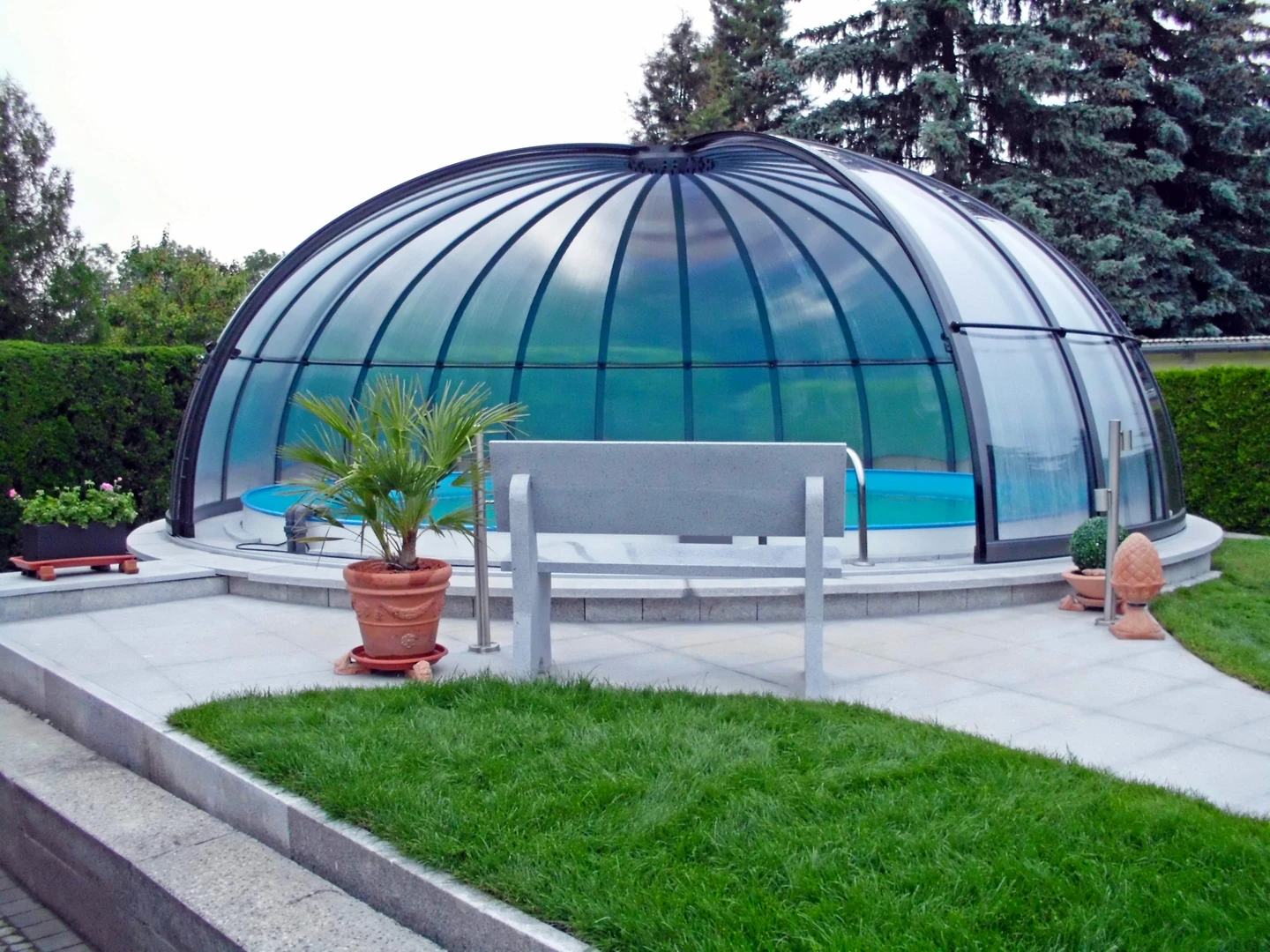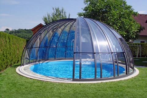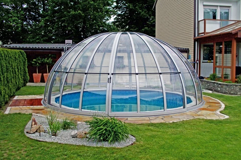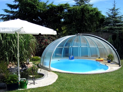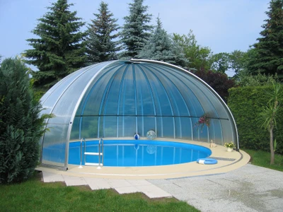 Acoperirea pentru piscina ORIENT™ este alegerea perfecta pentru cei care cauta o solutie nu doar practica, ci si spectaculoasa, pentru protejarea piscinei. Datorita formei sale unice semi-sferice, aceasta devine un element de decor in gradina, oferind in acelasi timp proprietati excelente de izolare termica – prelungind sezonul de inot, de la primavara devreme pana toamna tarziu, fara costuri suplimentare de incalzire.