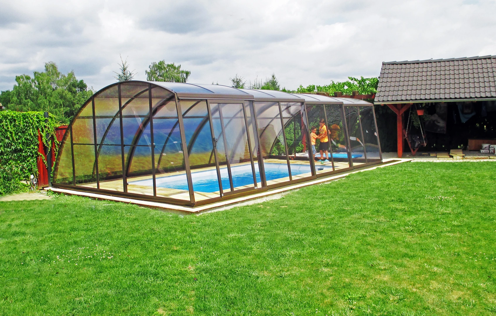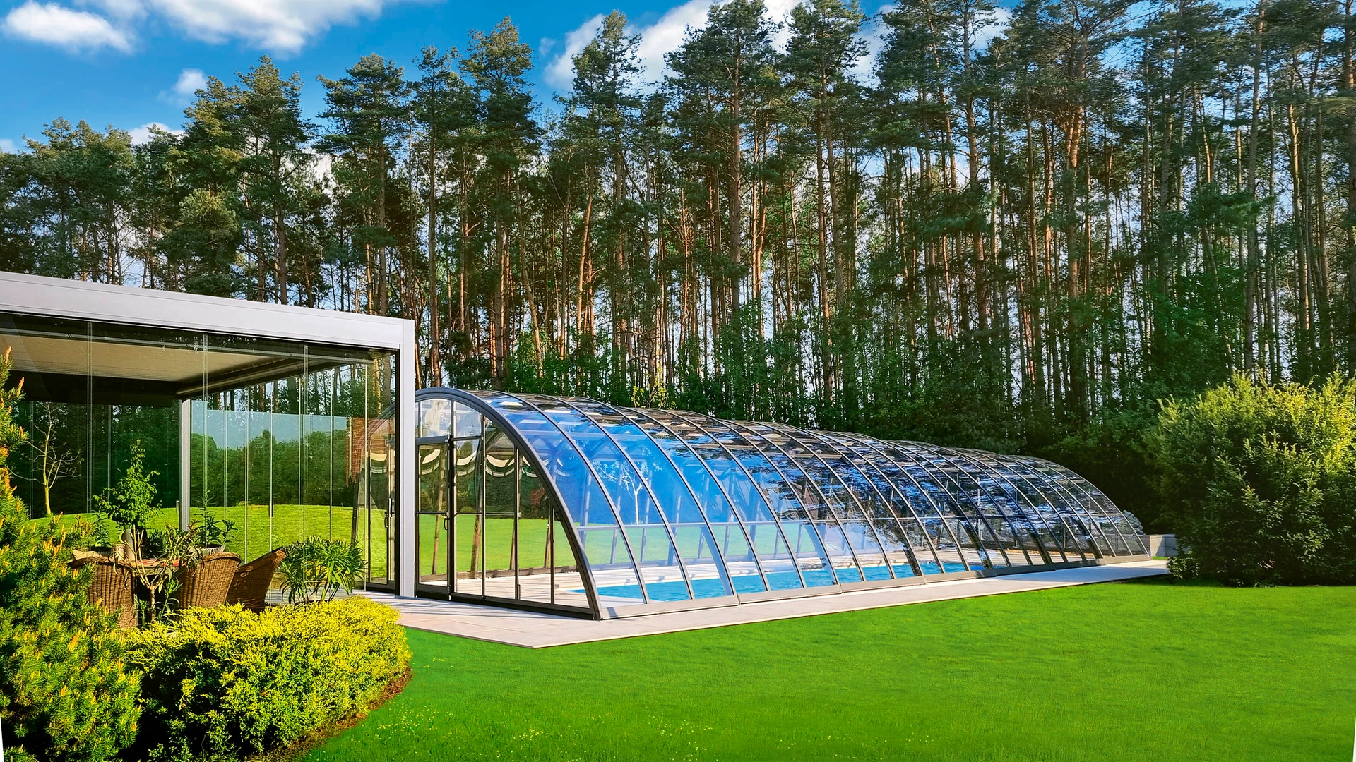 TERRA™ este cea mai joaca acoperire pentru piscina de la Alukov, proiectata sa se integreze aproape neobservata in ambientul inconjurator. Aspectul sau curat si minimalist se potriveste armonios cu gradinile moderne si stilurile arhitecturale, atat in pozitia deschisa cat si cea inchisa, asigura o vedere neobstructionata asupra gradinii si a zonei din jurul piscinei.