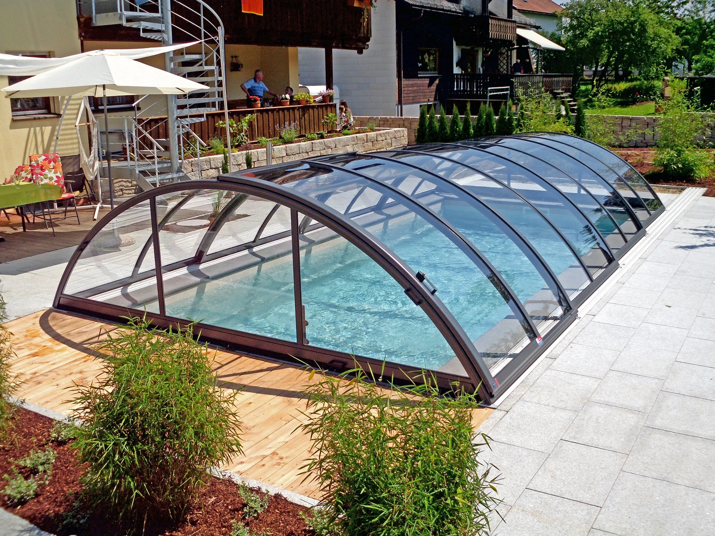 TERRA™ este cea mai joaca acoperire pentru piscina de la Alukov, proiectata sa se integreze aproape neobservata in ambientul inconjurator. Aspectul sau curat si minimalist se potriveste armonios cu gradinile moderne si stilurile arhitecturale, atat in pozitia deschisa cat si cea inchisa, asigura o vedere neobstructionata asupra gradinii si a zonei din jurul piscinei.