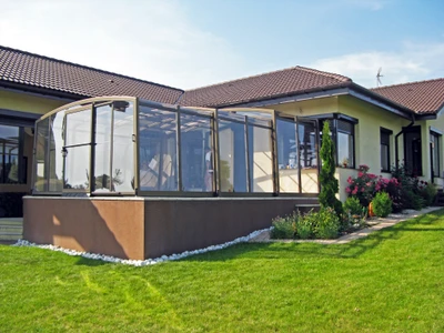 Acoperirea VISION™ este disponibila in mai multe culori de structura – argintiu, alb, antracit si bronz. Panourile din policarbonat pot fi transparente sau fumurii, permitand integrarea armonioasa in stilul gradinii sau arhitectura cladirii.