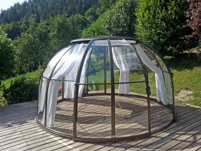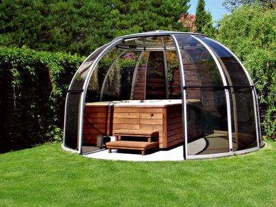 SPA DOME ORLANDO® este o solutie eleganta si practica, tip cupola, pentru cazi cu hidromasaj. Datorita designului inovativ, asigura o utilizare optima a spatiului, permitand ajustarea usoara in functie de amenajarea zonei spa. Este disponibil in doua dimensiuni: varianta mai mica, cu latimea interioara de 4 metri, si varianta mai mare, cu latimea exterioara de 5 metri.