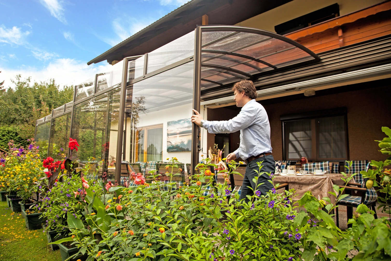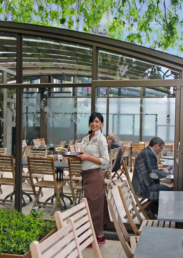 Extindeti afacerea cu un spatiu acoperit complet utilizabil. Terasa acoperita ofera locuri confortabile pentru oaspeti, in orice conditii meteo – protejeaza impotriva ploii, vantului si soarelui direct. In lunile de iarna, cu supliment de incalzire, puteti crea un spatiu de servire disponibil pe tot parcursul anului. Pentru restaurante, acest lucru inseamna mai multe mese si venituri mai mari, iar pentru hoteluri poate fi un loc de mic dejun sau un bar de seara cu vedere panoramica. Designul modern si executia de inalta calitate sporesc in continuare valoarea estetica a locatiei.