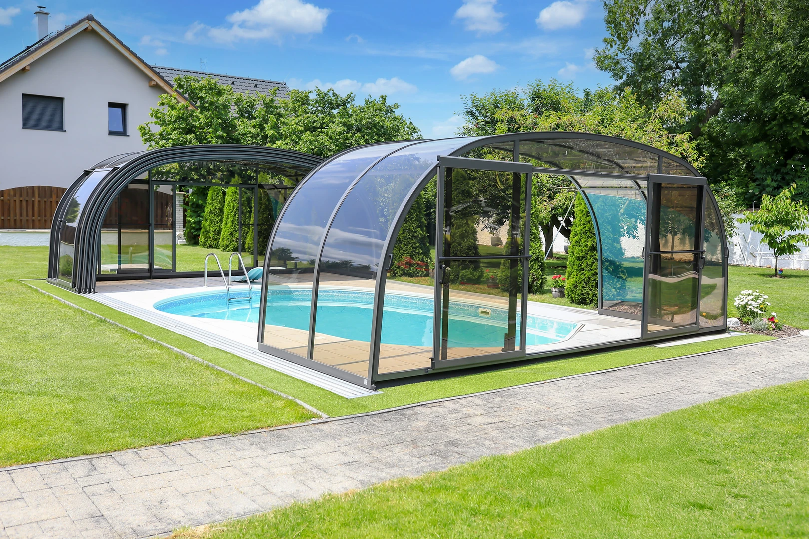 Clientul utilizeaza acoperirea tot timpul: "Utilizez acoperirea permanent si imi extinde sezonul de inot." Multumita sistemului EASY UP, manipularea segmentelor este simpla si nu necesita aplecare, crescand confortul zilnic al utilizatorului. Sistemul AIR FRESH asigura, de asemenea, o ventilatie mai buna si o atmosfera placuta atat pentru inot, cat si pentru relaxare.