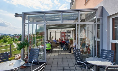 Acoperirea terasei permite oaspetilor sa stea sub cerul liber