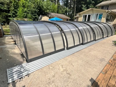 Sincer, nu pot sa cred cat de bine a rezistat acoperirea in timpul acestei furtuni. Cand tornada a trecut prin curtea mea, in mijlocul unui uragan de categoria 3, acoperirea piscinei a ramas ferma ca si cum nimic nu s-ar fi intamplat. Nu am mai vazut asa ceva niciodata. Intregul acoperis al casei vecinului meu a fost smuls, iar majoritatea tiglelor mele au fost aruncate de pe acoperis direct pe acoperire. Dar aceasta nu a prezentat nicio deteriorare vizibila.