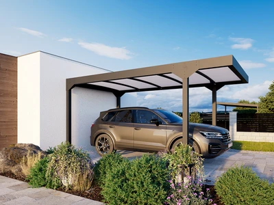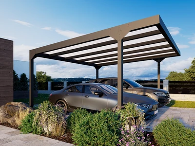 Carport Camper Solar este o acoperire auto inovatoare cu panouri solare, conceputa special pentru autorulote. Disponibila in trei dimensiuni, sistemul sau solar poate atinge o putere de pana la 6,96 kWp, oferind o solutie de parcare ecologica si contribuind la reducerea emisiilor de CO₂. Structura moderna, de culoare antracit, se integreaza armonios in orice mediu arhitectural.