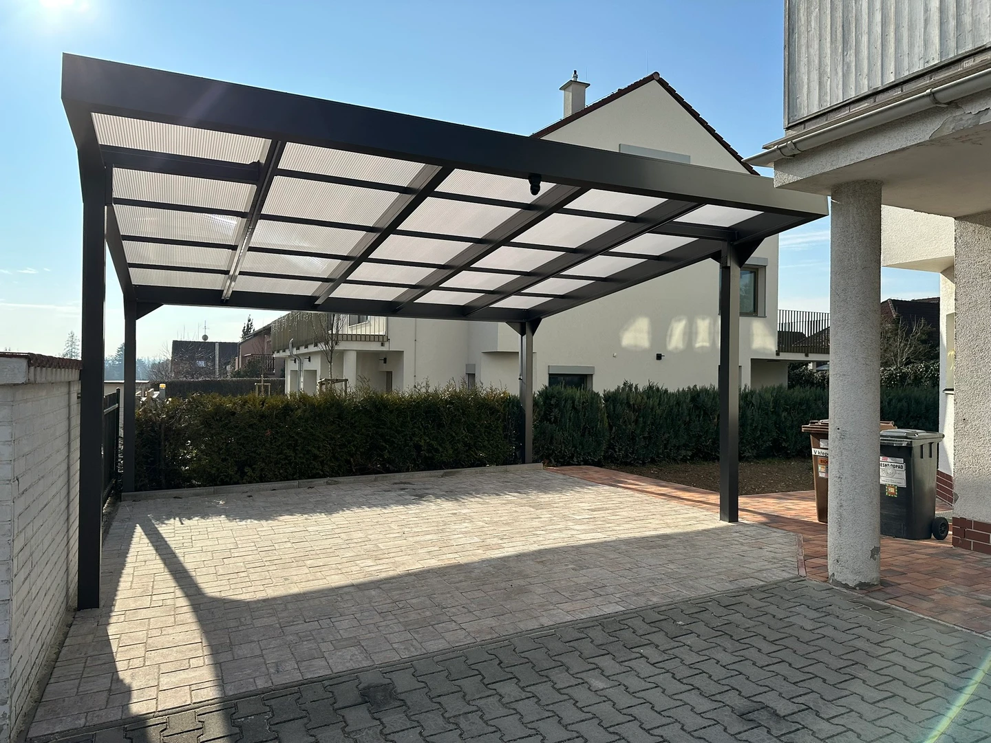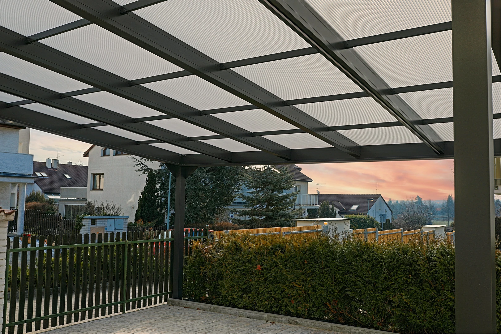 CARPORT CAMPER este o acoperire pentru autorulote, cu structura solida din aluminiu si acoperis din policarbonat. Disponibila in trei dimensiuni (Standard, L, XL), poate fi independenta sau fixata de cladire, oferind protectie impotriva ploii, zapezii si soarelui.