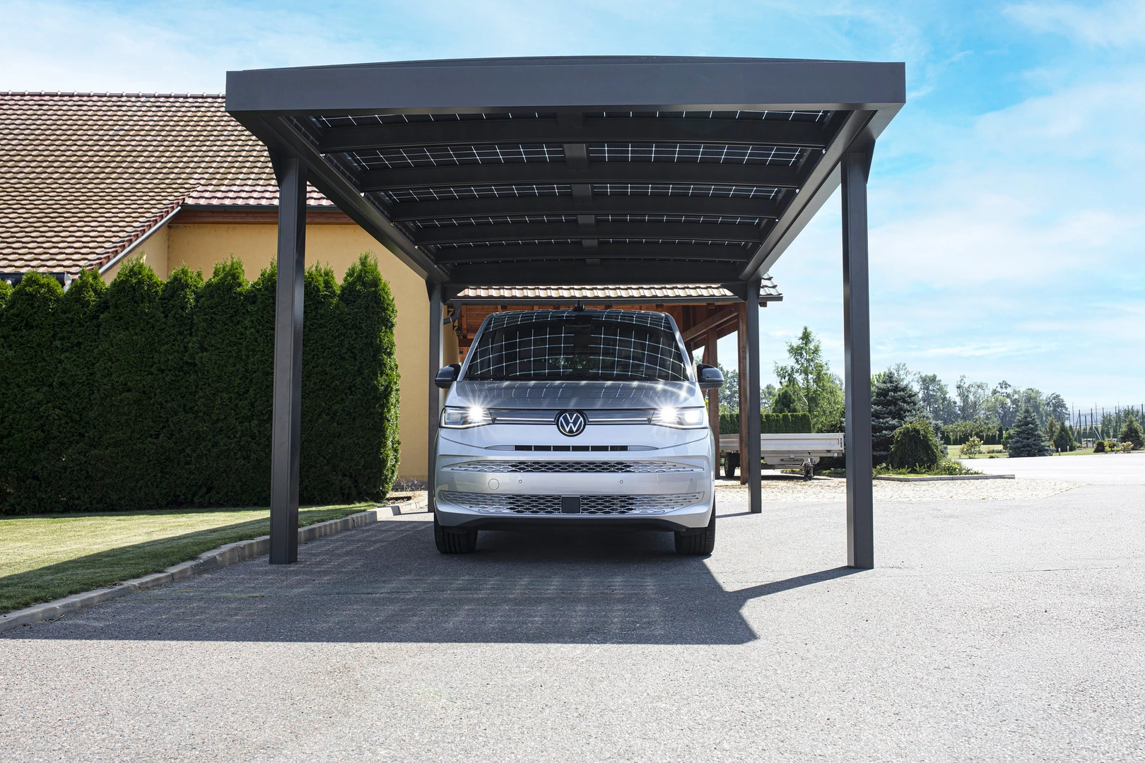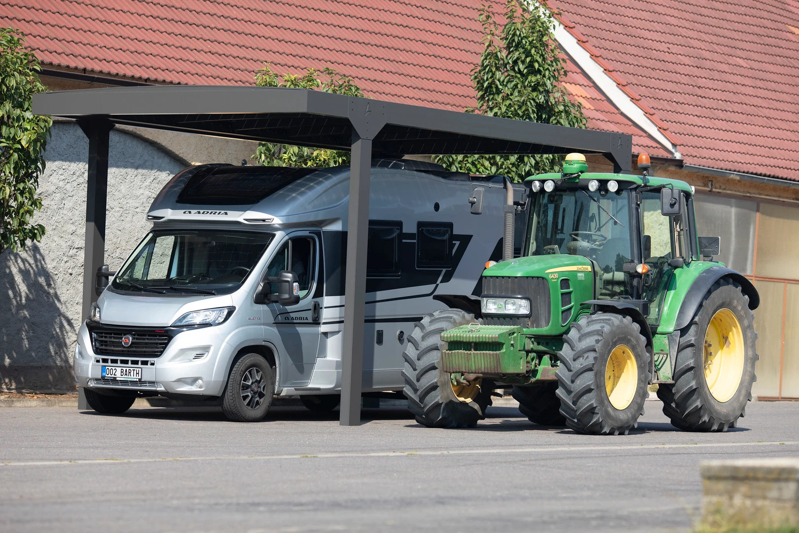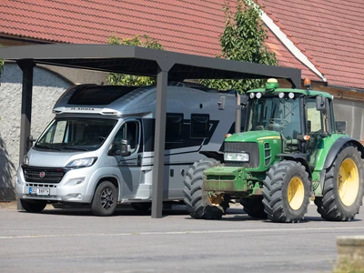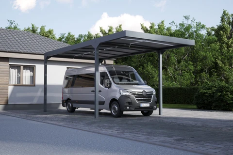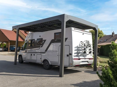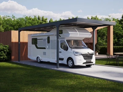 CARPORT CAMPER este o acoperire pentru autorulote, cu structura solida din aluminiu si acoperis din policarbonat. Disponibila in trei dimensiuni (Standard, L, XL), poate fi independenta sau fixata de cladire, oferind protectie impotriva ploii, zapezii si soarelui.