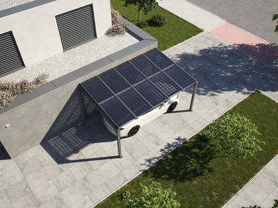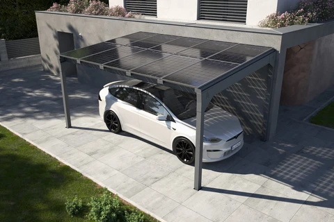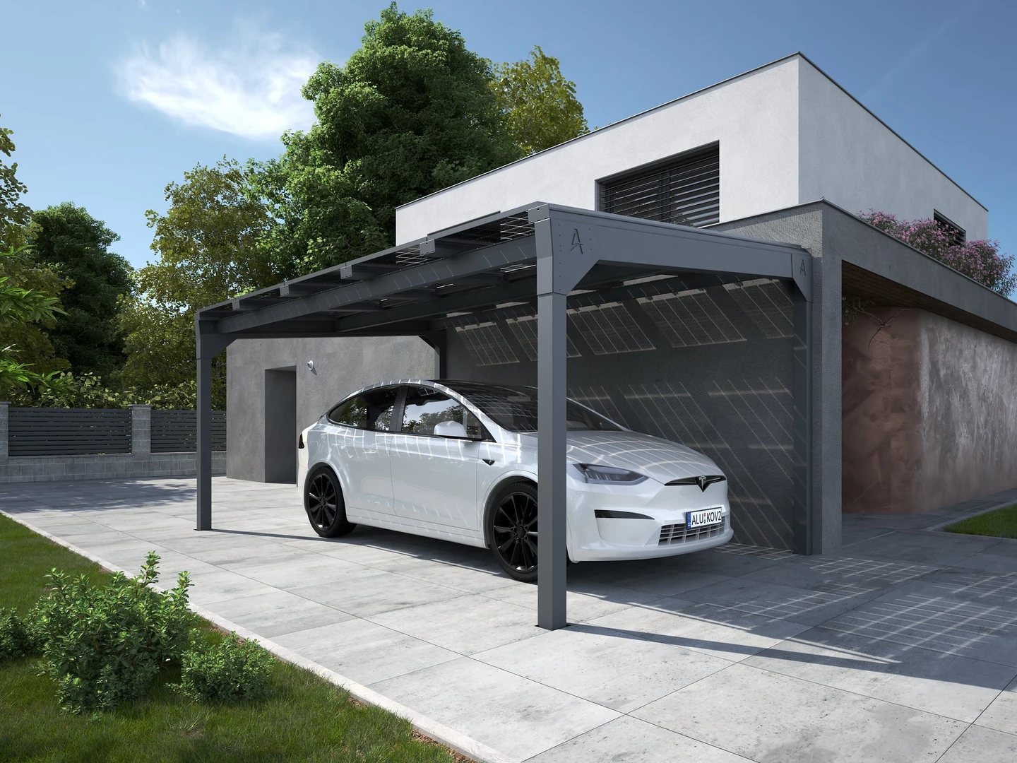 Carport Solar Premium este un spatiu de parcare pentru vehicule de categorie premium, echipat cu panouri fotovoltaice fara rama, bifaciale (sticla pe ambele fete), reprezentand cea mai moderna tehnologie. Designul sau curat si elegant nu este doar estetic, ci si practic: cu jgheaburi integrate si evacuare eficienta a apei pluviale, asigura utilizare de lunga durata fara griji.