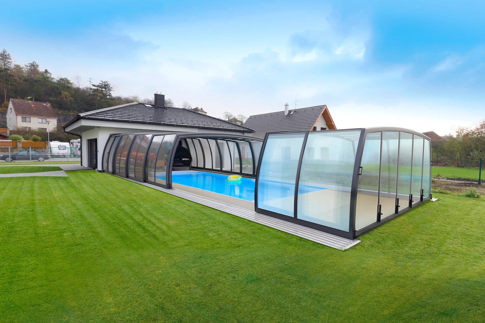 „Un mare avantaj al acoperirii este ca este foarte usor de manevrat, astfel incat chiar si copiii pot deschide piscina sau, din contra, o pot inchide. In plus, inaltimea este excelenta, pentru ca te poti misca liber, nu trebuie sa te apleci, ci poti merge oricum doresti.”